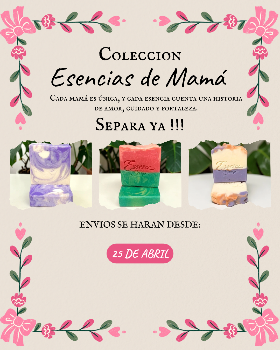En Essenz Soap creemos que el cuidado personal debe ser natural, puro y especial. Por eso creamos productos artesanales que nutren tu piel y tu cabello, ayudándote a sentirte bien de forma natural todos los dias.